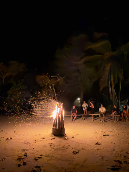 As night fell, the islands turned to silhouettes against a sky full of stars.Dinner was served under palm leaves and candlelight, followed by music, card games and laughter that echoed into the dark. A little rum, a guitar, stories from strangers who no longer felt like strangers. By the second night, everyone danced barefoot in the sand, the sea breeze carrying the rhythm.