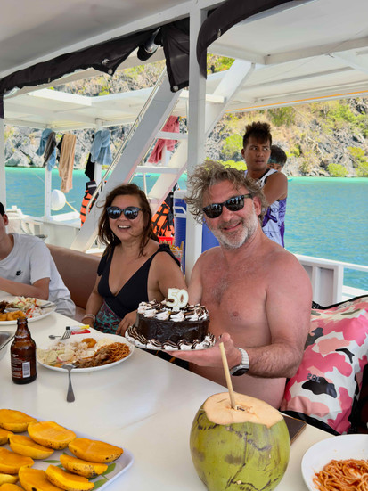 By the last day, everyone moved together like an old crew. The stops that day — Bulog Dos, Atwayan Coral and the Skeleton Wreck — were among the most beautiful of all.Lunches were long, filled with laughter, and even birthdays were celebrated on deck with homemade cake and song.